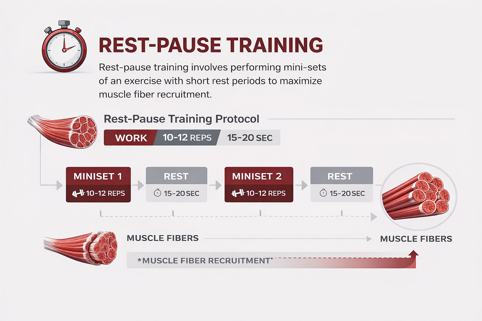 Rest-pause training is one of the most efficient intensity techniques available to intermediate and advanced lifters. By pushing beyond what conventional sets allow, you accumulate greater volume, stimulate more muscle fiber, and accelerate both strength and size development — all within the same time investment.