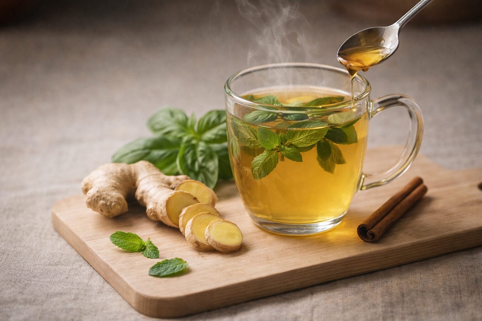كيفية الاستخدام:انقع 3–4 أوراق ريحان طازجة وحفنة من النعناع في ماء مغلي لمدة 5 دقائق. أضف العسل النيء حسب الذوق. اشرب ببطء أثناء أو بعد التدريب كشاي تعافي.