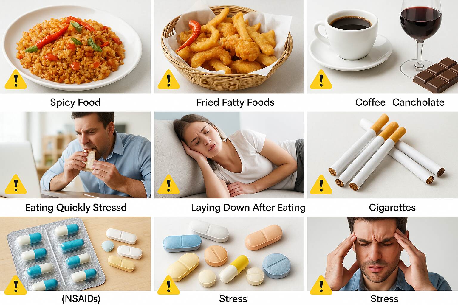 - Consuming fatty, greasy, or spicy foods