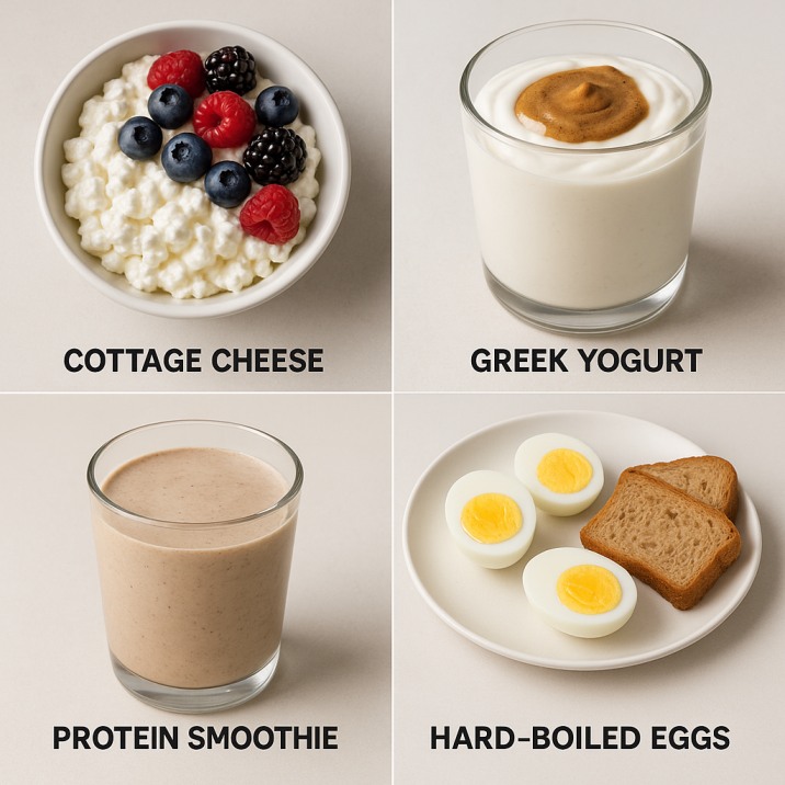 - Prioritize slow-digesting proteins like casein, cottage cheese, or Greek yogurt