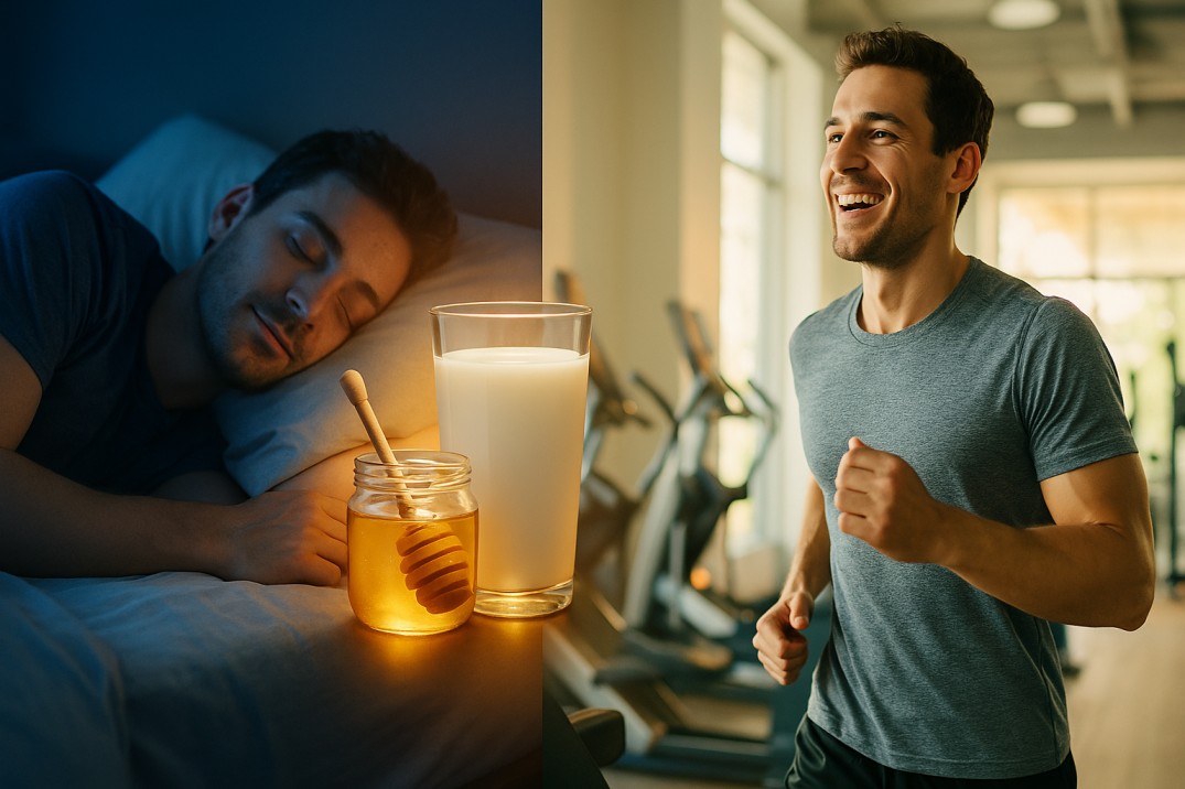 Quality sleep is crucial for muscle recovery and performance. Studies show that milk and honey together significantly improve sleep quality: