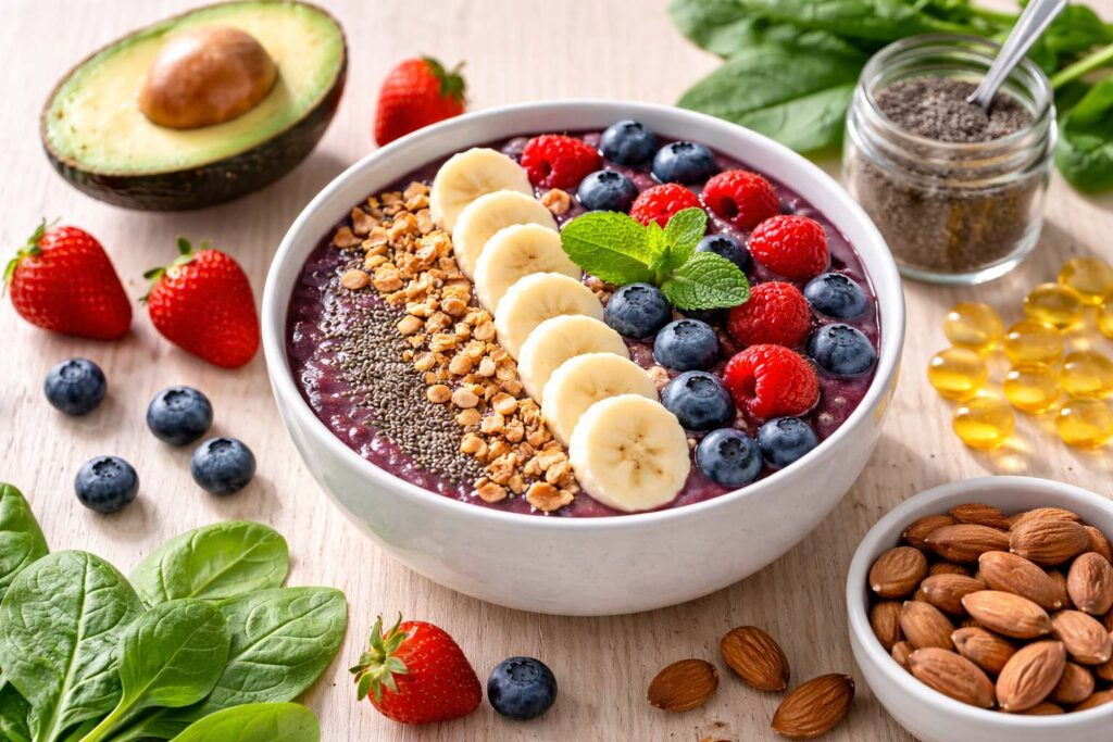 Complemente Estrategicamente: Considere adicionar enzimas digestivas nas refeições, vitamina D3 (2000-5000 UI se deficiente) e um probiótico de qualidade com pelo menos 10 bilhões de UFCs para apoiar a saúde intestinal — a base do seu corpo para absorção de nutrientes e função imunológica.