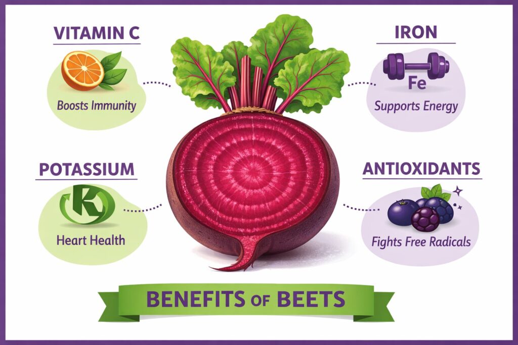 Tanto a raiz rosa escura quanto as folhas verde-escuras são comestíveis e nutritivas. A raiz doce combina lindamente com as folhas ricas em cálcio e ferro, criando um pacote nutricional completo. Para obter o máximo benefício, consuma beterraba crua ou em suco, pois cozinhar pode diminuir seu teor de nutrientes.