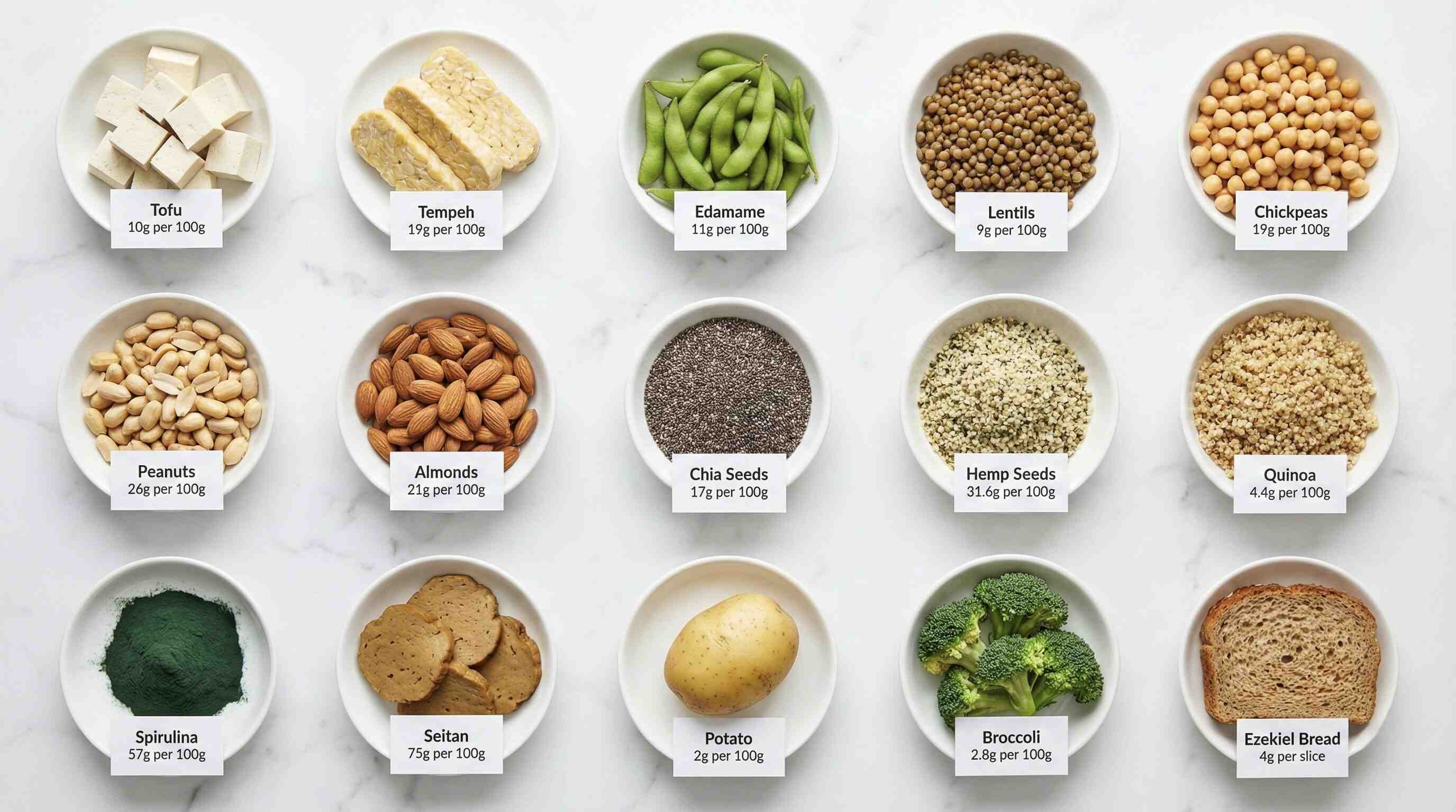 - Tempeh: 15g per ½ cup (fermented for better digestion)
